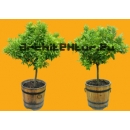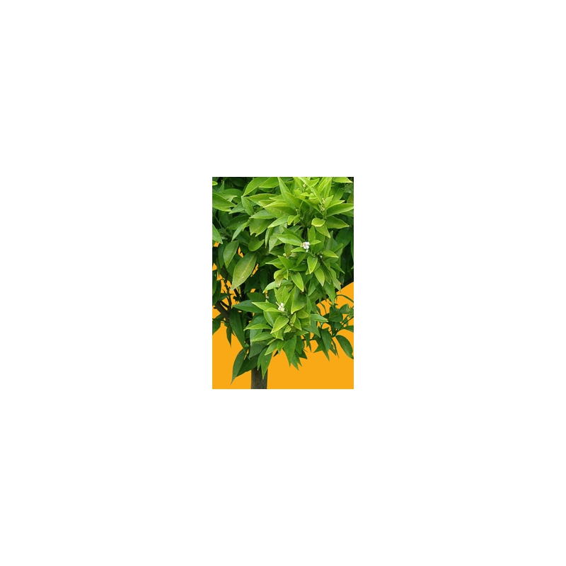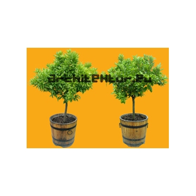 2 arbustes orangers en pots détourés sur 2 calques avec un fond neutre orange en arrière plan.