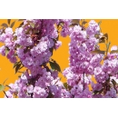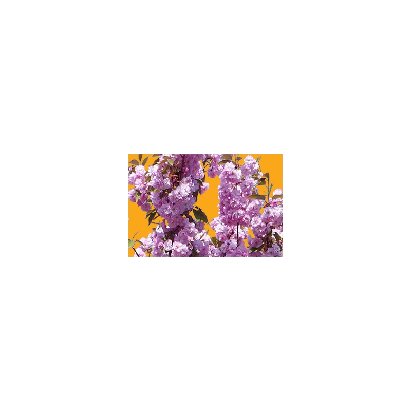 Cerisier en fleurs détouré sur un calque avec un fond neutre orange en arrière plan.
